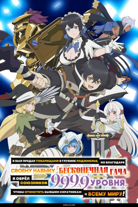 «Я был предан товарищами в глубине подземелья, но благодаря своему навыку «Бесконечная гача» я обрёл союзников девять тысяч девятьсот девяносто девятого уровня, чтобы отомстить бывшим соратникам и всему миру!» смотреть онлайн аниме бесплатно все серии